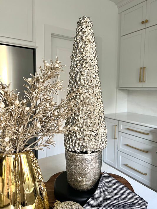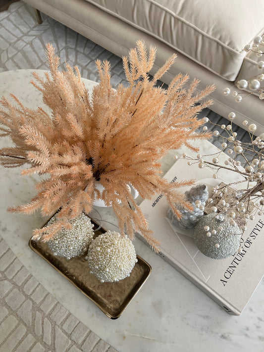 Champagne Glitter Metallic Pine Spray 13"L - Final Sale