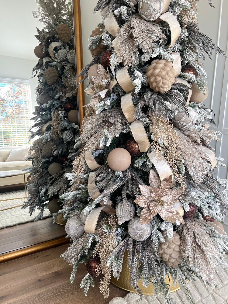Introducing our Glam Woodlands holiday collection features rich cocoas, neutral tones and pops of champagne. There is plenty of shimmer and shine. We are bringing back some of our best sellers while expanding the collection with new ornaments, stems and figurines.