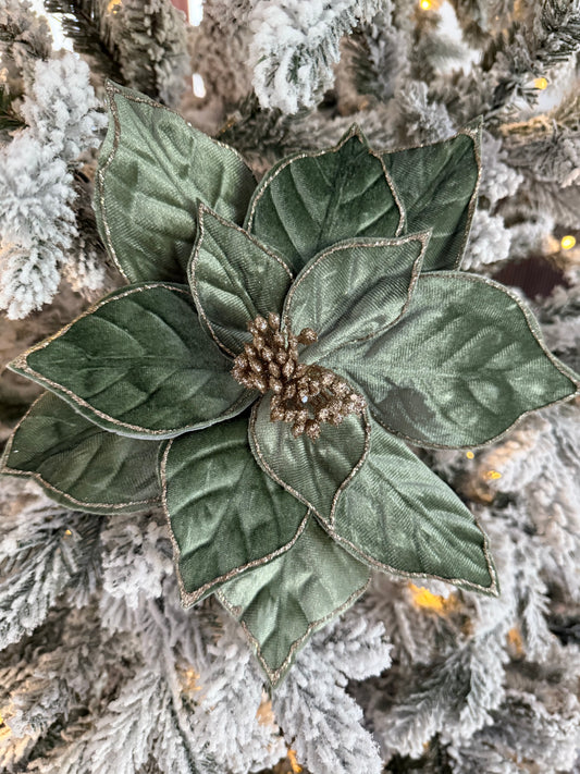 22" Green Velvet Poinsettia Stem