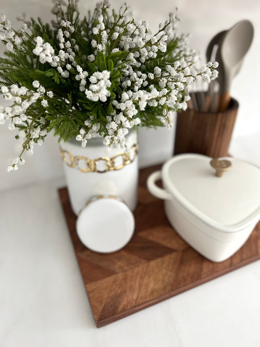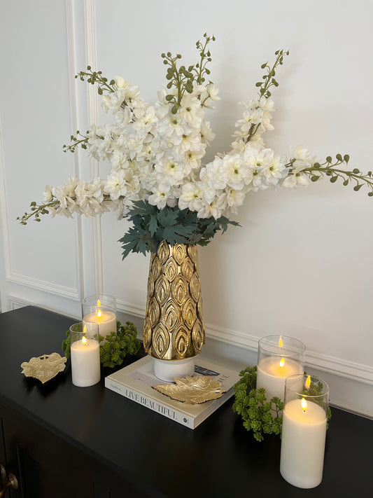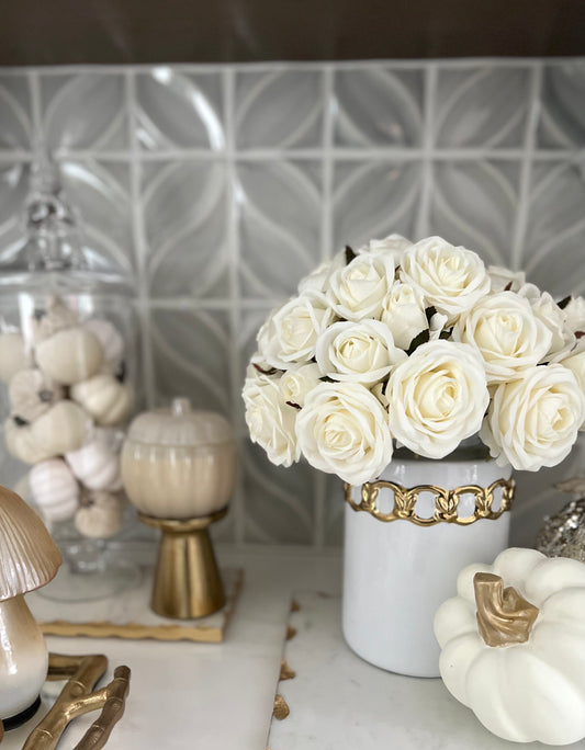 White florals are always in season. Shop our collection of premium faux florals including Roses, Pampas, Delphinums and others.