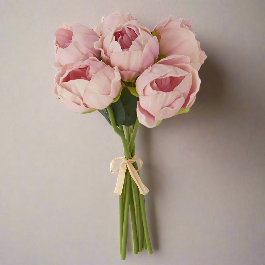 Pink peonies are sure to give you all the spring time feels. This bundle features 6 real touch peonies in the softest shade of pink