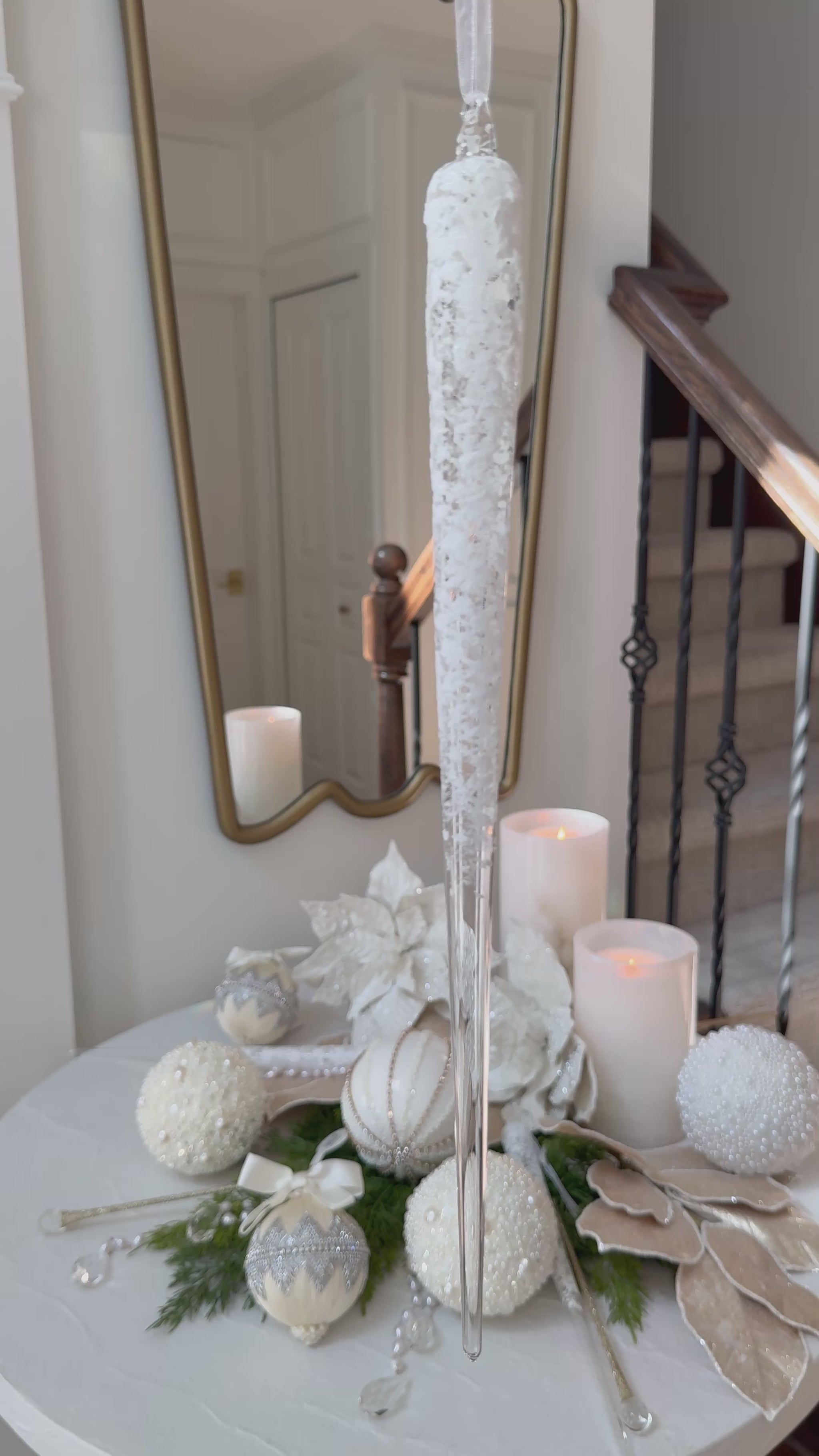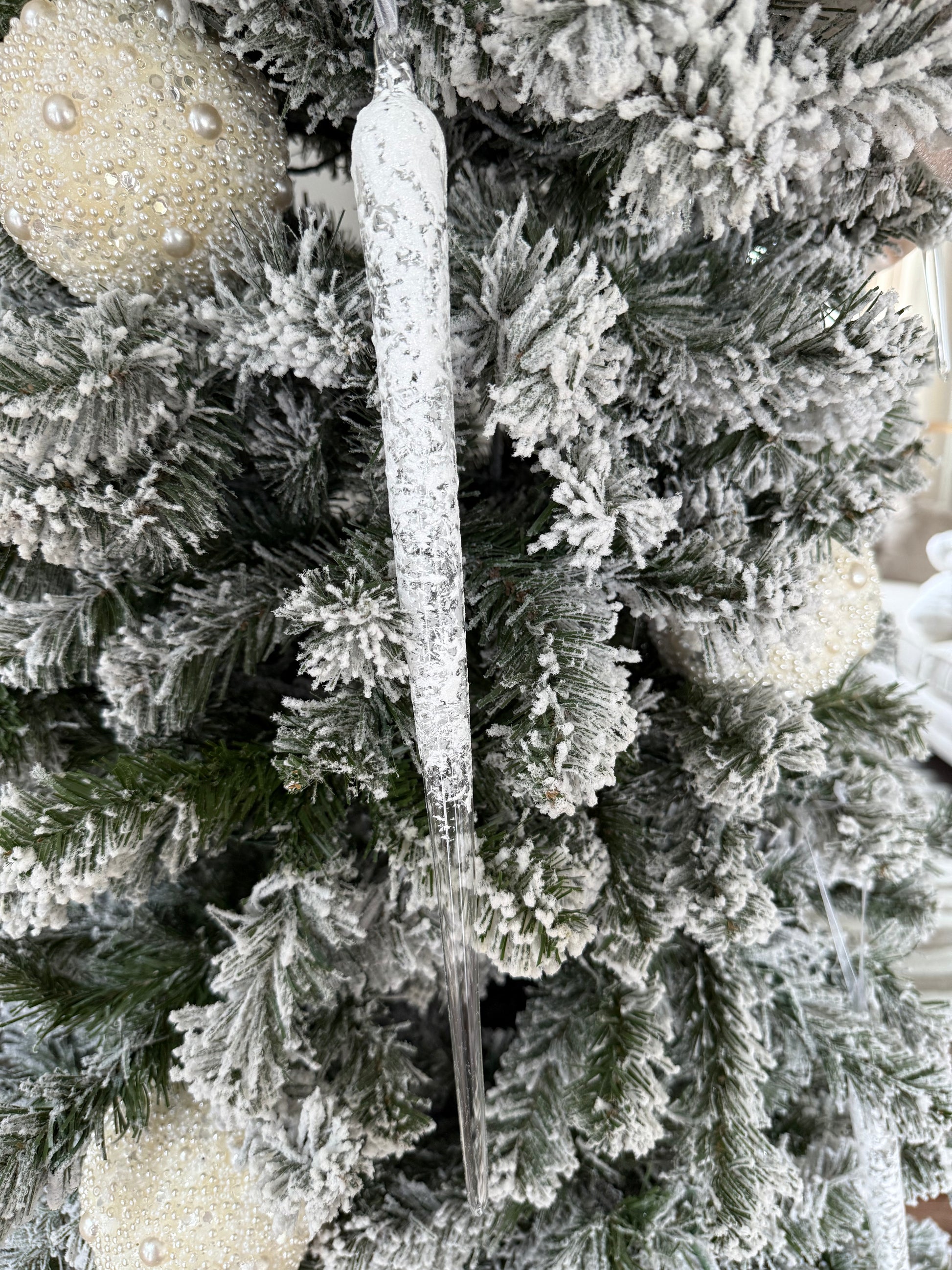Snowy Glass Icicle Ornament 15"